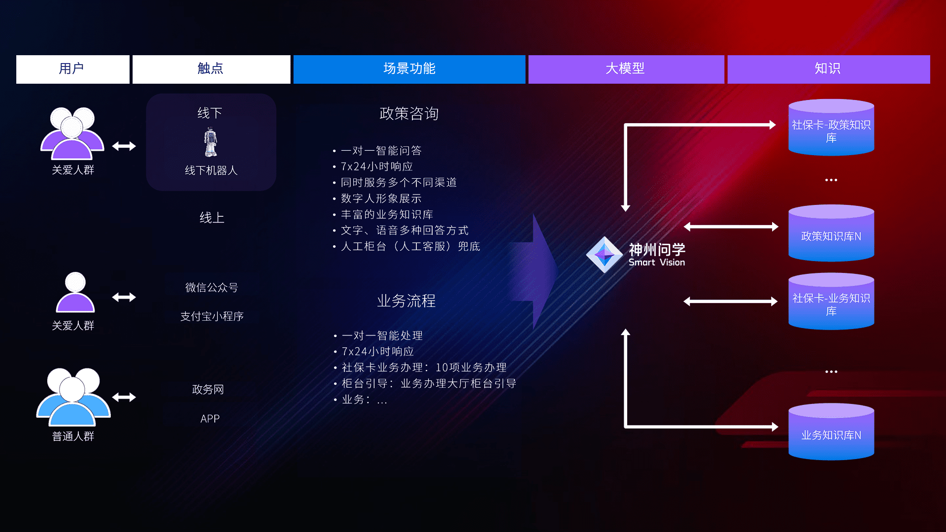 • 线上线下全覆盖:线上提供微信公众号、、、、支付宝小程序、、、政务网、、、app多种渠道,,与线下机器人形成完整服务体系。。。。