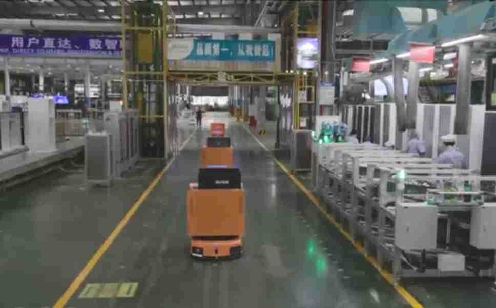 为车载冰箱物流配送打造的智能解决方案,,,,包含产中物流通过潜伏举升AMR搬运至线边,,,,产后成品物流智能仓储,,,流程包含产中物流智能齐套入库,,线边安灯叫料AMR智能配送至线边,,,成品入库、、、出库,,通过无人堆高车机器人,,,智能仓储管理替代人工作业管理,,,,实现更高存储、、、、更高效率、、、更具柔性化的解决方案。。